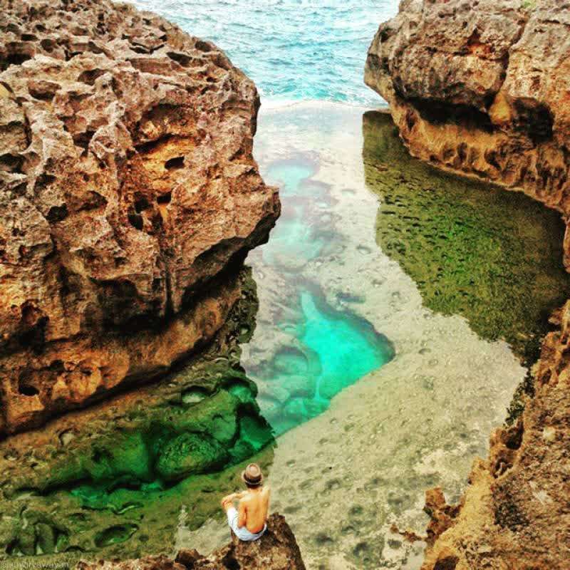 This very famous beach is located in Sakti Village, Nusa Penida District, Klungkung Regency, Bali Province. The word Billabong itself is taken from the English meaning "The end of the dead river. Angel's billabong is the estuary of the river before the water flows into the open sea. Avoid swimming when the sea is rising or in pairs.